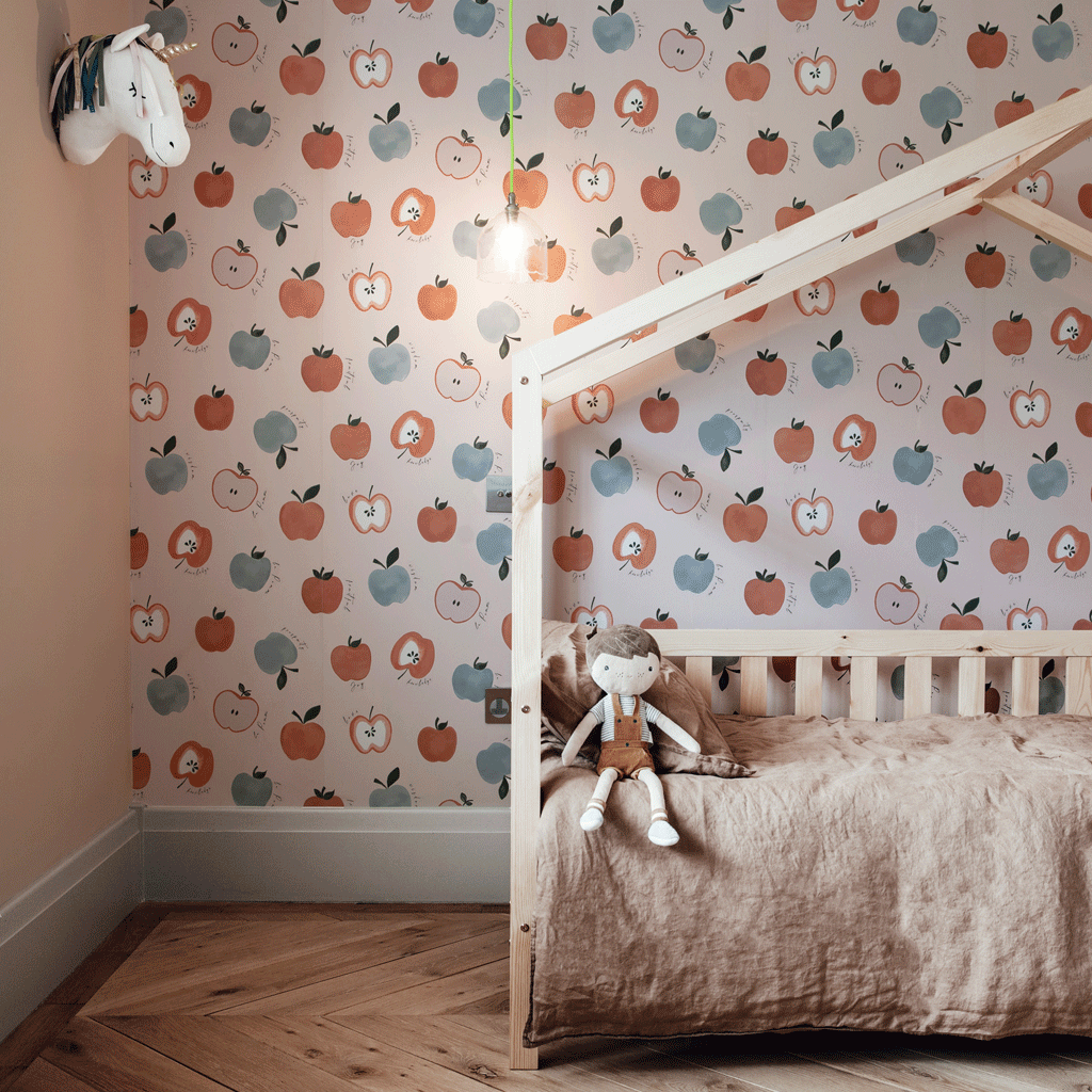 Bring the warmth and charm of a country garden into your home with our Apple Wallpaper, a beautifully hand-painted design inspired by the apple trees from my childhood garden. This unique wallpaper captures the spirit of health, positivity, and good fortune, each apple carefully crafted in watercolour and accompanied by uplifting, handwritten affirmations for an added touch of optimism. Available in two earthy colorways, it’s the perfect way to introduce a natural, joyful atmosphere to any room.