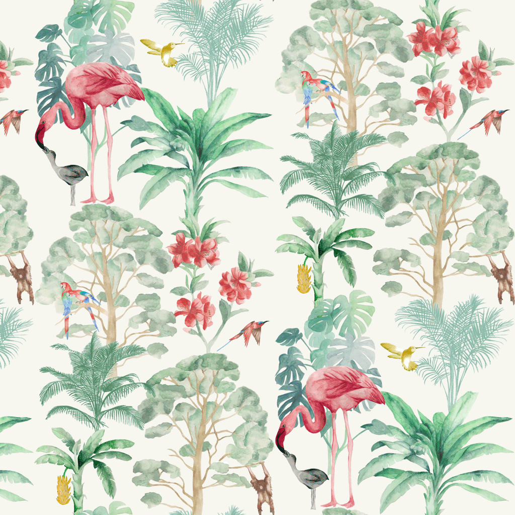 Nova Tropical Wallpaper – Bold Flamingo and Jungle Design for Exotic Interiors
