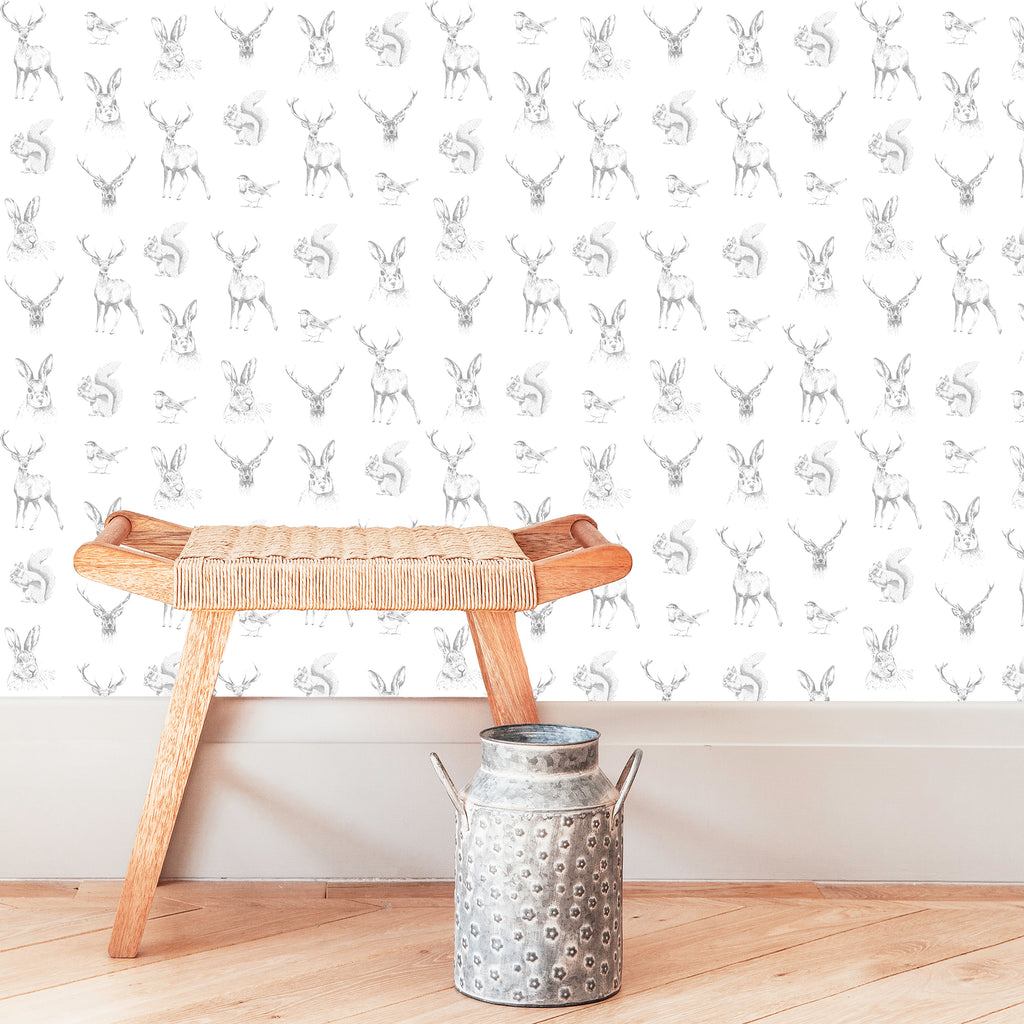 Ideal for nurseries, playrooms, hallways, and living rooms, this woodland animal wallpaper creates a warm and inviting atmosphere. The simple, stylish colour palette makes it easy to pair with a variety of decor styles—add vibrant accents for a contemporary touch, or mix with monochromatic plaids and textures for a rustic, country-inspired feel.
